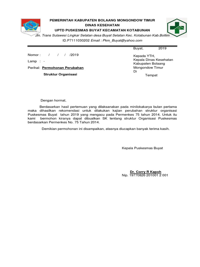 | Tanggal pembuatan Contoh Surat Pengajuan Perubahan Struktur Anisasi: Maret 2017 |